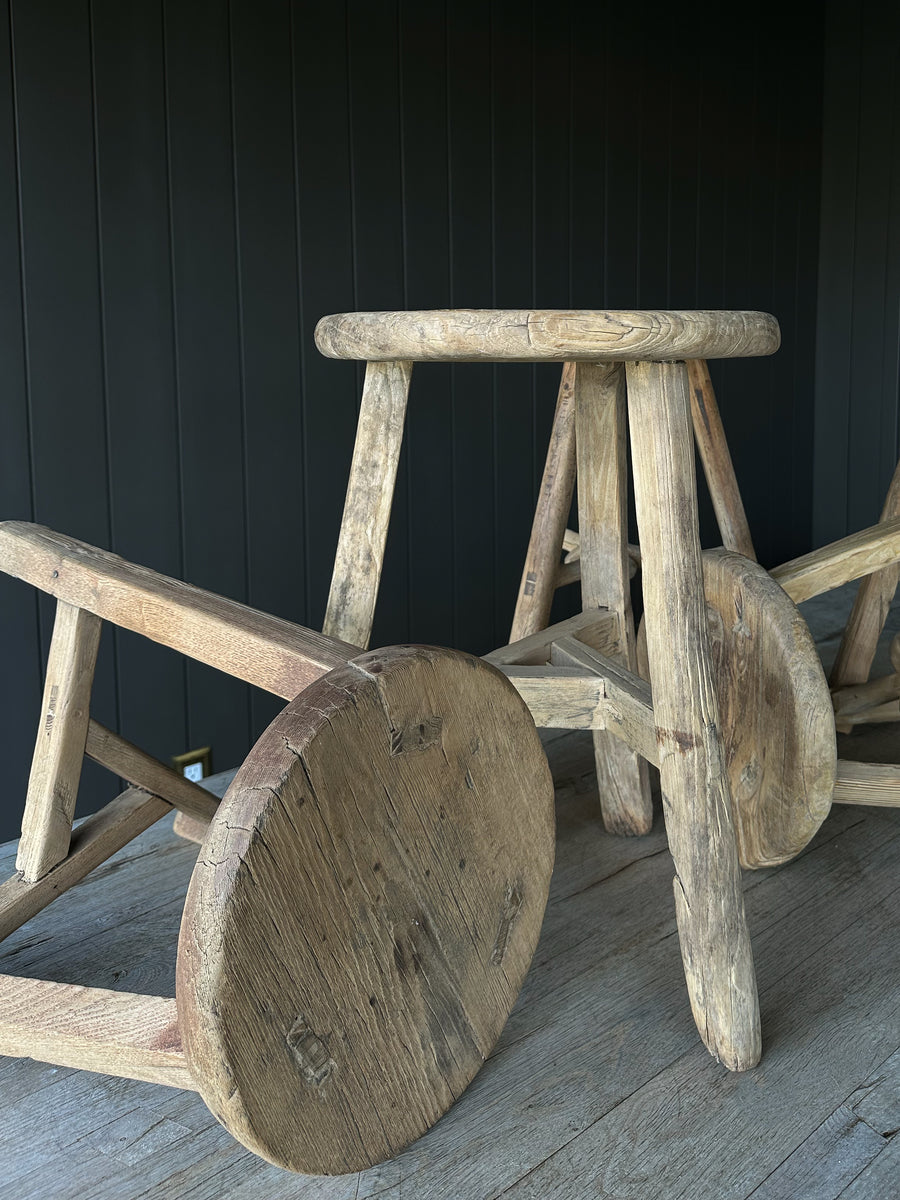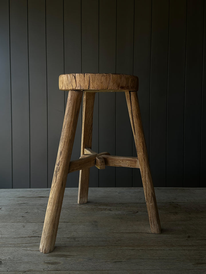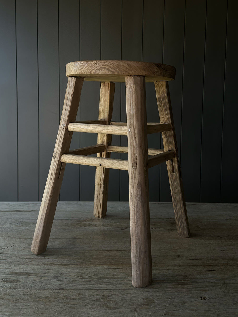Add character to any room with a round Elmwood Stool This stool features a light toned wood color full of texture and character. Each stool will slightly differ in size and wood tone.