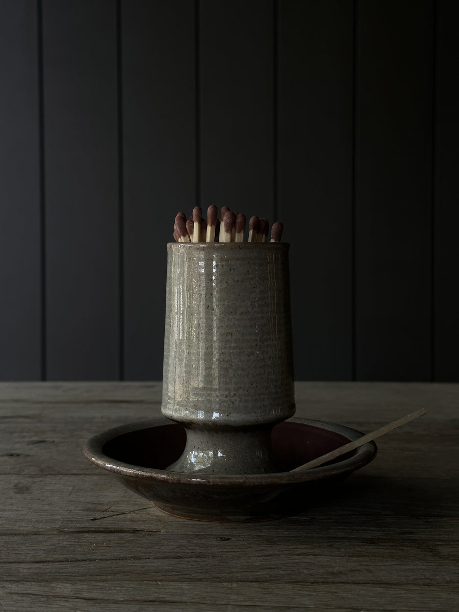 Keep the matches handy and stylish with this grey stoneware match holder with a striker plate. This match holder is made of durable stoneware with a reactive glaze finish that gives it a unique and attractive look. The base has a well that can hold standard and longer matches, and the side has a metal striker plate to light them with ease. Use this match holder in any area that has candles or a fireplace, such as the living room, dining room, kitchen, or bathroom.