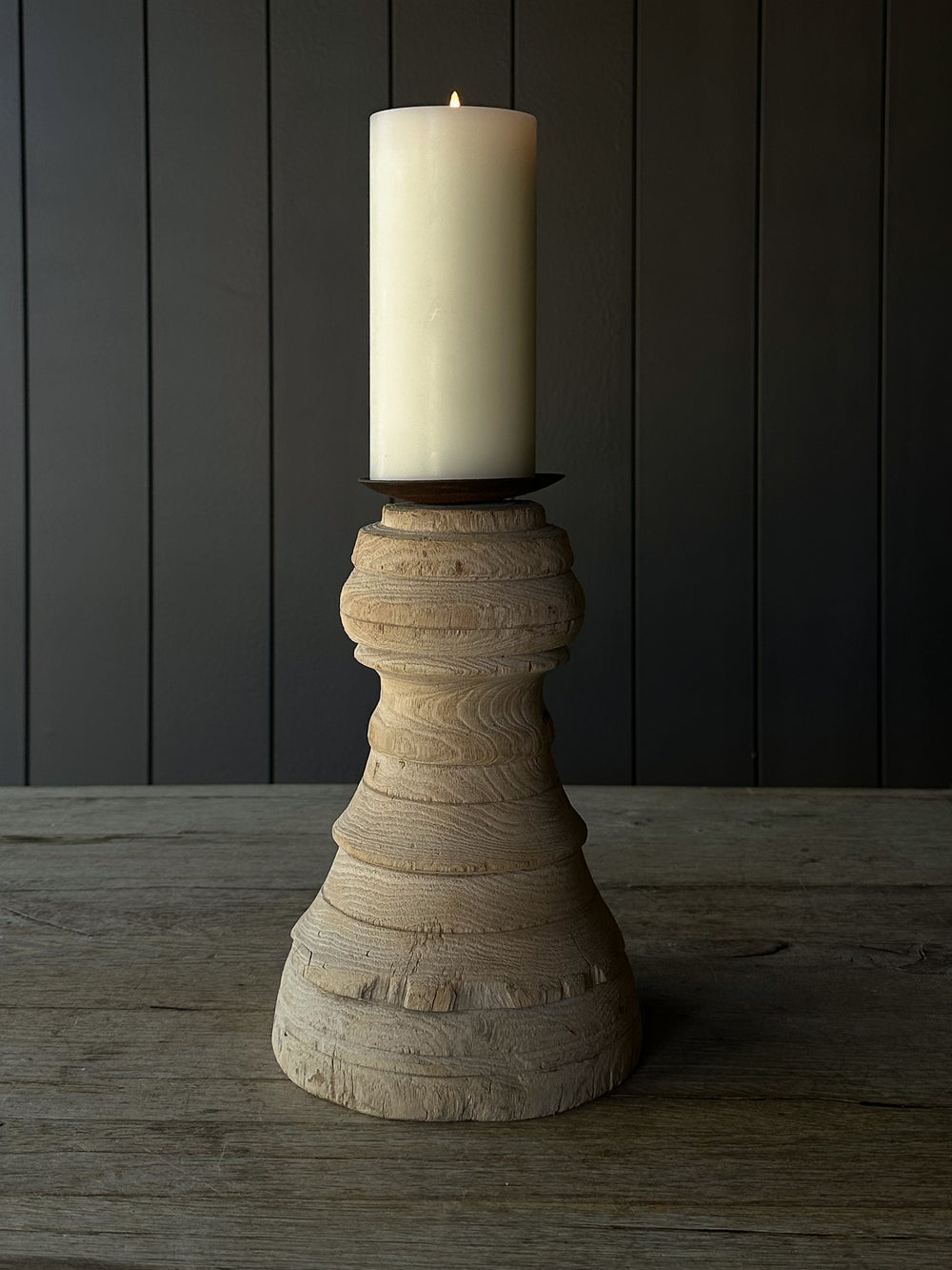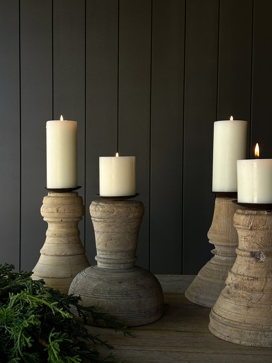 Made from reclaimed rustic wood these candle holders are hand turned to a unique shape. Each piece is a one of a kind piece.