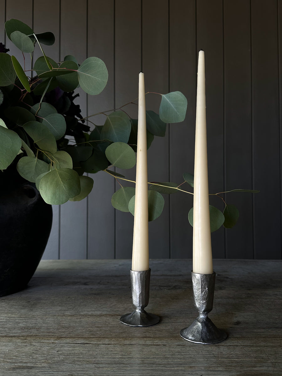 This set of iron candle holders is featured in 2 finishes. This set pairs well with the twisted taper candle set.